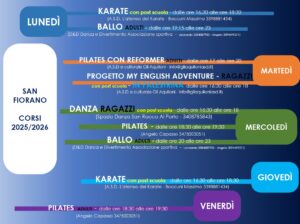 Per gli iscritti ai relativi corsi è possibile usufruire del servizio di post scuola primaria nei giorni di: